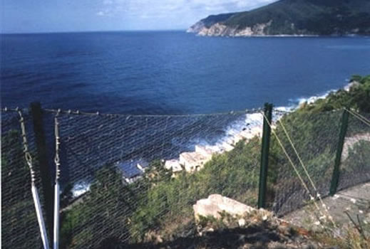 Un altro settore di intervento, comlpementare alle barriere paramassi è quello relativo ai Pannelli in Fune i quali sono costituiti da una Rete di Protezione e Funi di Acciaio fissati saldamente al terreno che ricoprono totalmente l'area interessata, e costituisco un rinforzo estremamente efficace contro fenomeni di frane e dissesti geologici.